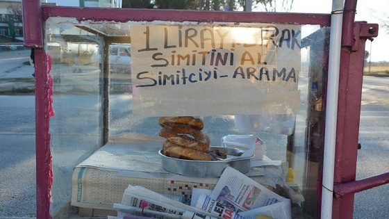 Tezgahtaki paraları toplamak için geldiği sırada AA muhabirine açıklama yapan Şendoğan Güneybaşı, her yere yetişemeyince aklına "simidi kendi satan tezgah" projesinin geldiğini söyledi.
