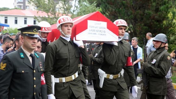 Trabzon'un Maçka ilçesi kırsalında bölücü terör örgütü mensuplarıyla sağlanan sıcak temasta yaralanan ve kaldırıldığı hastanede şehit düşen Jandarma Kıdemli Başçavuş Ferhat Gedik (41), Hatay'ın İskenderun ilçesinde doğum gününde son yolculuğuna uğurlandı.