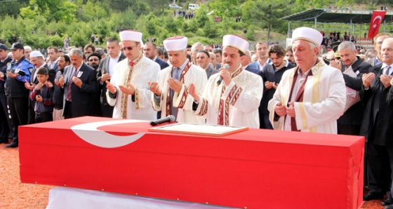 Tören mangası ile birlikte tabuta omuz veren Hüseyin Kalmış, kayınpederi İbrahim Sütçü'yü teselli etmeye çalıştı. Cenazenin araçtan indirileceği sırada kayınpederi İbrahim Sütçü'ye sarılan Hüseyin Kalmış, "Koruyamadım babacığım. Kucağımda götürdüm hastaneye. Benimle konuşuyordu babacığım" dedi. Daha sonra şehidin kayınbabası emekli imam Selahattin Kalmış, şehidin cenaze namazını kıldırdı. Şehidin cenazesi tekrar cenaze aracına konularak Araç ilçesine bağlı Sarpun köyünde aile kabristanlığına gözyaşları arasında defnedildi.