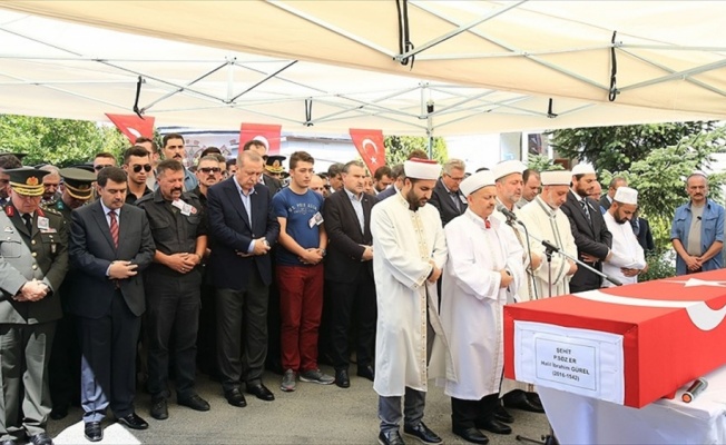 Cumhurbaşkanı Erdoğan, cenaze namazı öncesi şehidin babası ve kardeşine taziyelerini iletti.