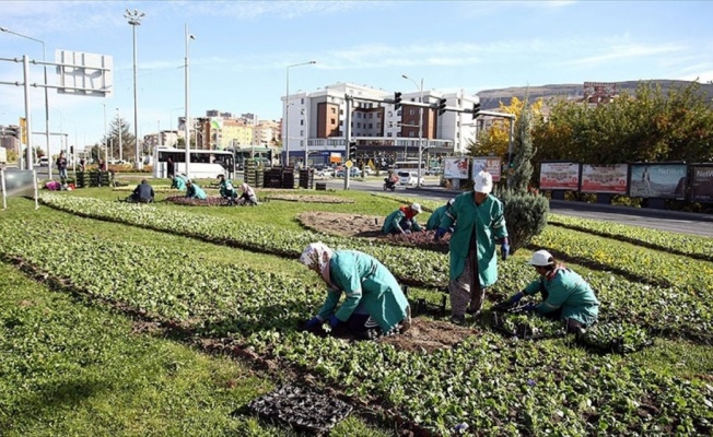 Mevsimlik çiçeklerin yanı sıra lale dikimi gerçekleştiren kadın işçiler, tüm şefkatlerini bitkilere vererek şehrin güzelliğine güzellik katmak için çalışmalarını titizlikle sürdürüyor.