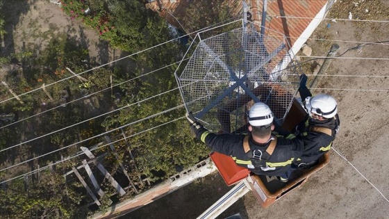Edirne'de leyleklerin yuva kurdukları elektrik direklerinde, arızalara daha güvenli müdahale edilebilmesi için portatif yuvalar yapıldı.