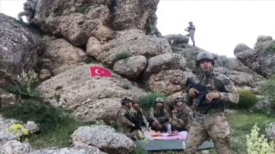 Ramazan ayında çekilen videoda operasyonda ağır yaralanmasının ardından kaldırıldığı hastanede şehit olan Evran ile silah arkadaşlarının Gabar Dağı bölgesindeki yüksek yamaçlarda iftar yaptıkları görülüyor.