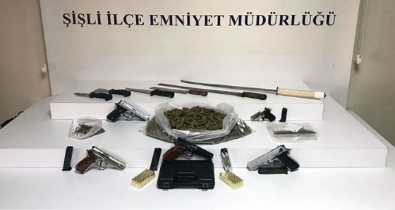 Uygulama kapsamında önceden belirlenen adreslere ve şüpheli şahıslar üzerinde yapılan aramalarda 2 adet ruhsatsız tabanca, 3 adet kurusıkıdan bozma tabanca, 107 adet 9mm dolu fişek, 5 adet pala olarak tabir edilen kesici alet, 18 adet av tüfeği kartuşu, bin 150 gram uyuşturucu madde (Skunk), 5 adet extacy hap, 60 gram (sentetik cannebinoid) bonzai, 2 adet el telsizi, 1 adet şok cihazı ve 5 adet çalıntı olduğu değerlendirilen alarmlı elbise ele geçirildi. Yapılan uygulamada 2’si firari şahıs olmak üzere 5 şüpheli yakalanarak gözaltına alındı.