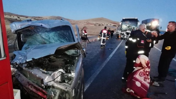 Sivas'ın Kangal ilçesinde bir yolcu otobüsünün hafif ticari araçla çarpışması sonucu ilk belirlemelere göre 2 kişi öldü, 4 kişi yaralandı.