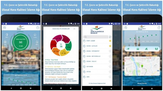"Ulusal Hava Kalitesi İzleme Ağı" nda yer alan 300 adet hava kalitesi ölçüm istasyonundan elde edilen ölçüm sonuçlarını "www.havaizleme.gov.tr" web adresinden kamuoyu bilgisine sunan bakanlık, vatandaşların havanın kalitesine daha kolay erişebilmesi amacıyla mobil uygulama geliştirdi.