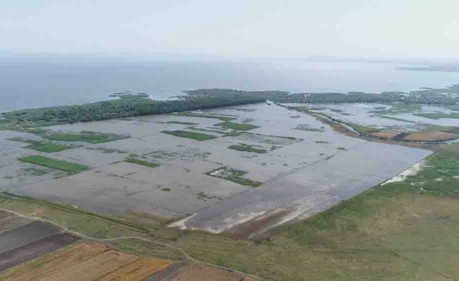 Edinilen bilgiye göre Bursa’nın Karacabey ilçesinden doğarak Susurluk çayı ile birleşip Manyas gölüne dökülen Koca Dere şiddetli yağışlar sebebiyle taştı. Manyas gölüne döküldüğü çöküntü alandaki verimli tarım arazileri sular altında kaldı. Binlerce dönümlük tarım arazisi göle dönerken ilginç manzarada gökyüzünden drone ile görüntülendi. Bölgede zararın tespiti için çalışma başlatıldığı öğrenildi.