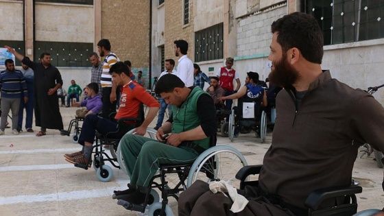 Suriye'de Halep'in batısındaki Etarib ilçesinde yaşayan engellilere destek amacıyla özel bir yarışma düzenlendi.