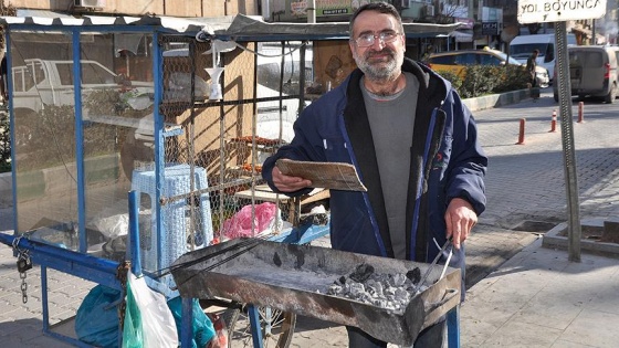 Burada kiraladığı evde eşi ve 2 çocuğu ile yaşamını sürdüren Yusuf, Urfa Caddesi'nde seyyar arabada kebap satıyor.