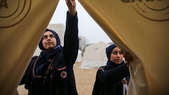 Aralarında Suriyeli Türkmen Fatmanur Nefize'nin de bulunduğu gönüllüler, "İzcilik, başkalarına yardımcı olmaktır" şiarıyla çadırların kurulduğu alanlarda yoğun çaba harcıyor.