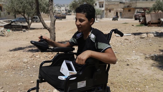 Suriye'de Esed rejimi saldırılarında iki bacağını kaybeden 14 yaşındaki Suriyeli Taha Süleyman'a, İnsan Hak ve Hürriyetleri (İHH) İnsani Yardım Vakfınca tekerlekli sandalye yardımı yapıldı.