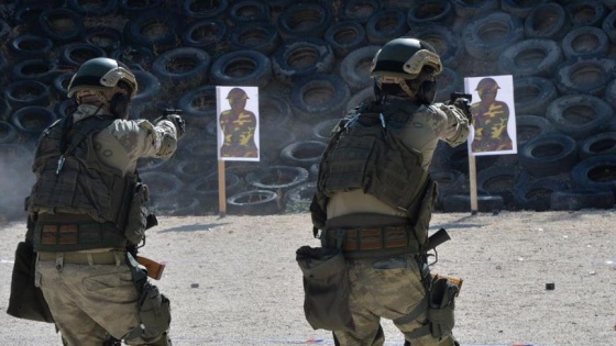 TSK'nın sosyal medya hesaplarından "Komandolardan tam isabet" başlığıyla paylaşımda bulunuldu. Paylaşımda, iki komandonun silahla gerçekleştirdiği eğitimin fotoğrafı yer aldı.