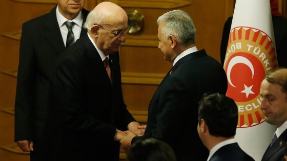 TBMM Başkanı İsmail Kahraman, Başbakan ve AK Parti Grup Başkanı Binali Yıldırım, CHP Genel Başkanı Kemal Kılıçdaroğlu ve MHP Genel Başkanı Devlet Bahçeli ile Meclis'te bir araya geldi.