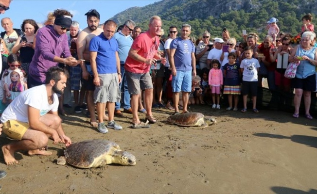 "600 deniz kaplumbağası yuvası var"Kaska, iyileşen deniz kaplumbalarıyla birlikte 13 yavru caretta carettayı da denize bıraktıklarını bildirdi.