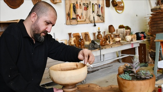 Manisa'nın Turgutlu ilçesinde, bebekken geçirdiği felç sonucu sağ kolunu kullanamayan 46 yaşındaki Erdinç Uluoğlu, atık ahşap malzemelerden yaptığı eserlerle dikkati çekiyor.