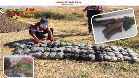Operasyonda kalaşnikof, tabanca, 4 şarjör, 93 fişek, hazine arazisinde bir metre derinlikte gömülü 4 çuval içinde 49 gaz maskesi ve 32 filtre ele geçirildi, bir şüpheli gözaltına alındı.