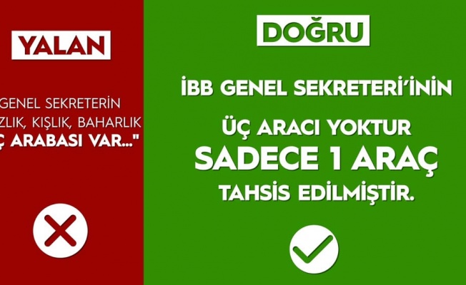 Doğru: İBB Genel Sekreteri’nin üç aracı yoktur, sadece bir araç tahsis edilmiştir.