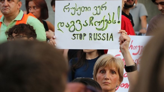 Rusya Devlet Başkanı Vladimir Putin'in, Gürcistan’da düzenlenen Rusya karşıtı protestoların ardından Rus hava yolu şirketlerinin Gürcistan’a uçmasını geçici olarak yasaklayan kararnameyi imzalamasına da tepki gösteren protestocular hükümeti Rusya'ya karşı etkili politika uygulama çağrısında bulundu.