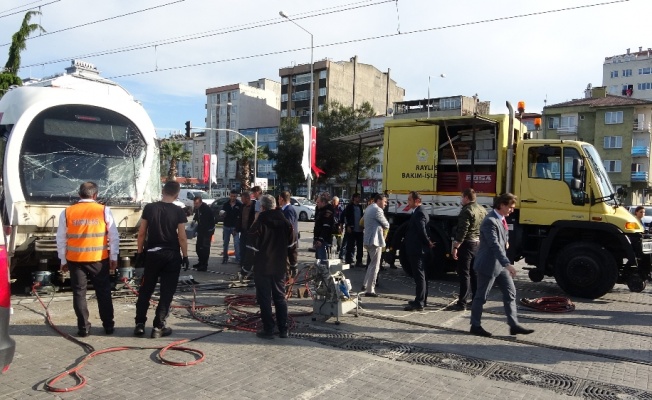 Samsun’da tır ile çarpışan tramvay raydan çıkarken, kaza maddi hasarla atlatıldı.