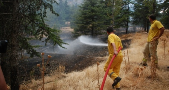 Edinilen bilgiye göre; Kaleardı Mahallesi su deposu yanındaki alanda kuruyan otların kişi veya kişilerce yakılması sonucu başlayan yangına ilk olarak mahalle sakinleri müdahale etti. Vatandaşların ihbarı üzerine itfaiye ve Orman İşletme Şefliği ekipleri de bölgeye intikal ederek kısa sürede çalışmalarına başladı. Çam ağaçlarının bulunduğu ormanlık alana sıçrayan yangın ekiplerin yaptığı çalışma sonucu kontrol altına alınarak söndürüldü. Yaklaşık 5 dönümlük alanda etkili olan yangında bazı çam ağaçları zarar gördü. Olayla ilgili polis inceleme başlattı.