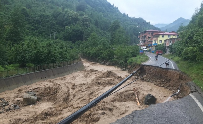 Trabzon’un Araklı ilçesinde önceki gün 7 kişinin ölümü, 3 kişinin de kaybolmasının ardından bugün de Yomra ilçesinde şiddetli yağış etkili oluyor. Demirciler mahallesinde bir ev heyelan nedeniyle yıkılırken, Yomra-Özdil karayolu Taşboğazı mevkiinde yolda yaşanan çökme ve heyelan nedeniyle ulaşıma kapandı.