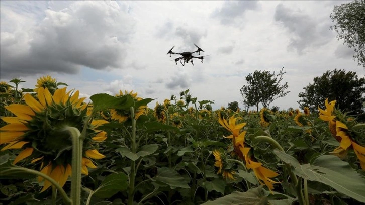 Trakya'da ayçiçeği tarlalarında görülen çayır tırtılı zararlısına karşı dron ile ilaçlama çalışmaları sürüyor.
