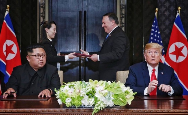 ANKARA (AA) - ABD Başkanı Donald Trump ile Kuzey Kore lideri Kim Jong-un tarafından Singapur'da yapılan tarihi zirvenin ardından imzalanan ortak açıklamada, Kore Yarımadasında on yıllardır süren gerilimi dindirmeyi amaçlayan çok sayıda taahhüt yer aldı.