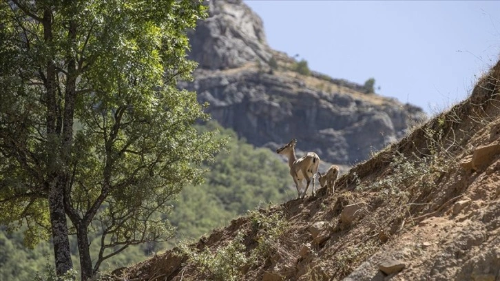 Tunceli'de koruma altındaki yaban keçileri ve yavruları, Munzur Vadisi Milli Parkı'ndaki ormanlık alanlarda beslenirken görüntülendi.