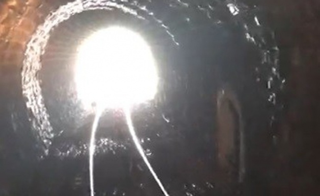 Yaban keçilerinin tüneldeki maceraları cep telefonu kamerasına yansıdı.