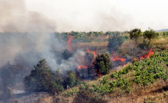 Manisa’nın Turgutlu ilçesinde, meyve bahçeleri ile üzüm bağlarının bulunduğu tarım arazilerinde çıkan yangında yaklaşık 15 dönüm alan zarar gördü.