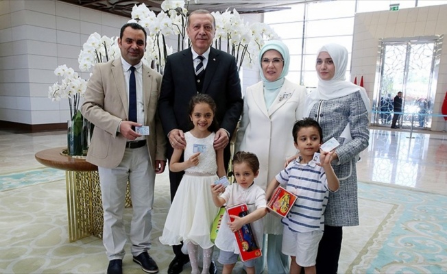Erdoğan, Bana ve ailesine kimliklerini takdim ettiHalep'teki katliamı, annesiyle beraber dünyaya sosyal medya üzerinden duyuran 8 yaşındaki Bana el-Abed, ailesiyle birlikte Cumhurbaşkanı Erdoğan'ın elinden Türkiye Cumhuriyeti kimliklerini aldıktan sonra AA muhabirinin sorularını yanıtladı.