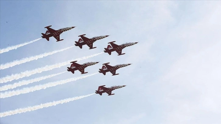 Türk Hava Kuvvetlerinin akrobasi timi Türk Yıldızları, Sultan Alparslan'ın şehri Muş'ta gösteri uçuşu gerçekleştirdi.