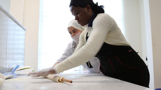 Ugandalı eğitmen Martha'ya Türk yemeklerini öğreten aşçı Nurullah Çoruk da yurt dışından gelen misafirlere yöresel yemekleri öğrettiklerini dile getirdi.