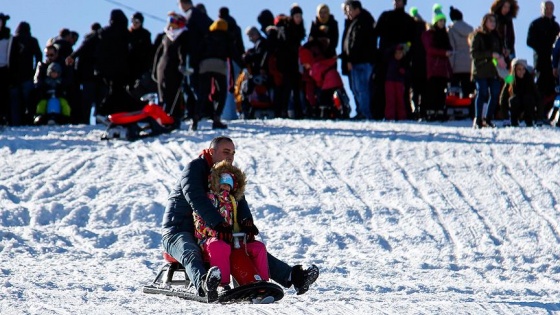 Hafta sonunu fırsat bilen günübirlikçiler yoğunluğu daha da artırdı. Tatilciler, pistlerde kayak, kızak ve snowboard yaparak ya da kar motoru gezintileriyle karın tadını çıkarıyor.