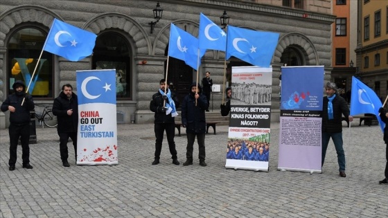 İsveç Uygur Maarif Derneğince düzenlenen protesto gösterisinde, Parlamento önüne çadır kuruldu. Eylemciler, "Uygurlara özgürlük", "Soykırımı tanıyın" ve "Toplama kamplarını kapatın" sloganı attı.