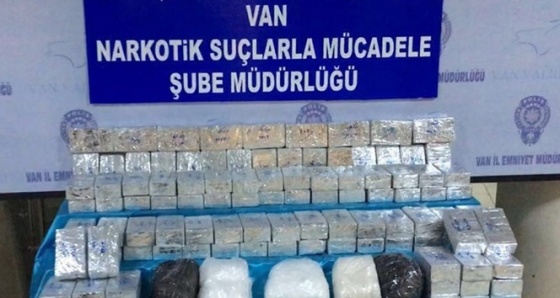 Van Emniyet Müdürlüğü’nden yapılan açıklamada, “Narkotik Suçlarla Mücadele Şube Müdürlüğü görevlerim, ilimiz İpekyolu ilçesi Bostaniçi Mahallesinde durumundan şüphelenmek durdurulan 65 plakalı hafif ticari kamyonette narkotik dedektör köpeği ‘Şila’ ile birlikte arama yapıldı. Yapılan aramada: 103 paket halinde toplam 52 Kilo 120 gram eroin ve 5 paket halinde toplam 5 kilo 2 gram metamfetamin maddesi ele geçirildi. Elde edilen uyuşturucu madde ile ilgili olarak EÜ. ve H.K. isimli şahıslar “Uyuşturucu veya Uyarıcı Madde Ticareti Yapmak / Uyuşturucu Madde Nakletmek” suçundan gözaltına alındı. Soruşturma çok yönlü olarak devam etmektedir” denildi.