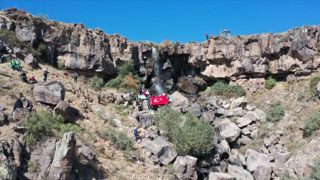 Katılımcılar, ellerinde Türk bayrakları ile Deliçay Kanyonu'ndaki 12 kilometrelik parkurda doğa yürüyüşü yaptı.