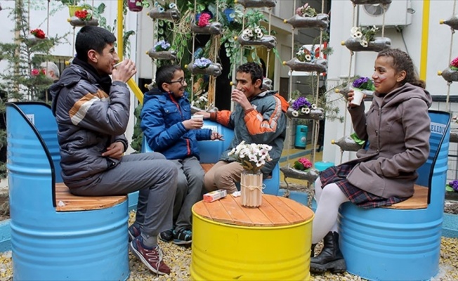 Atık malzemeleri yeniden tasarlayarak köpek barınağı, kitaplık, koltuk, çiçeklik, süs eşyalarına dönüştürerek boyayan belediye ekipleri, sokaktaki duvarlara da 50 bin plastik kapak yapıştırarak üzerlerine dünyaca ünlü ressamların eserlerini yansıttı.
