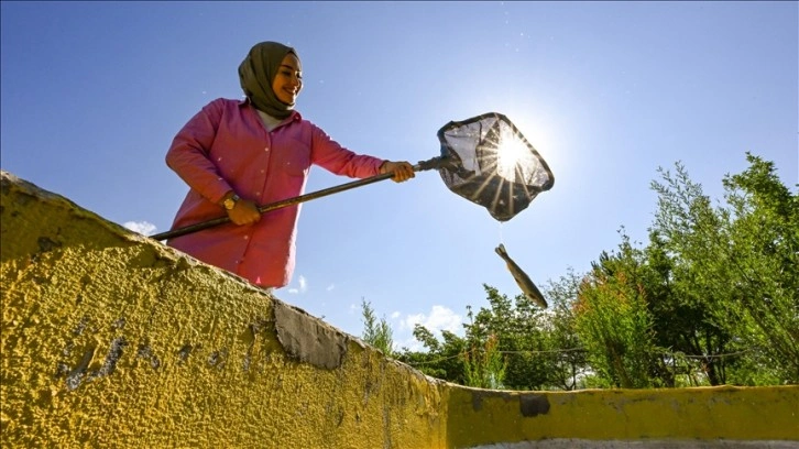 Van'ın Gevaş ilçesinde 29 yaşındaki girişimci Mayıs Şeker, Birleşmiş Milletler Gıda ve Tarım Örgütü (FAO) ile Küçük ve Orta Ölçekli İşletmeleri Geliştirme ve Destekleme İdaresinden (KOSGEB) aldığı destekle büyütüp modernize ettiği alabalık tesisinde yılda 10 ton alabalık yetiştiriyor.