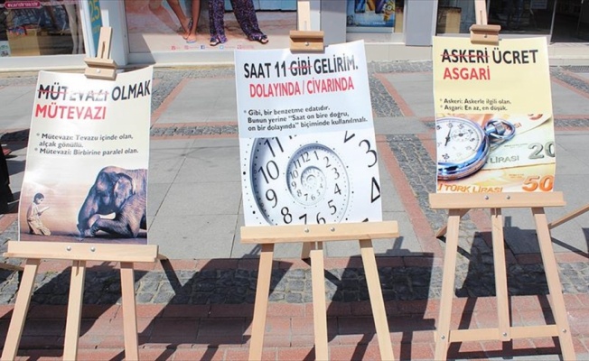 Edirne'de, lise öğrencilerinin hazırladığı ve Türkçe'de yanlış kullanılan kelime ve deyimlerin doğru hallerinin afiş ve grafiklerle gösterildiği "Öyle Değil Böyle" adlı sergi açıldı.