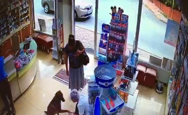 Eczacıda yaşanan ilginç anlar güvenlik kameralarına saniye saniye yansıdı. Görüntülerde yaralı sokak köpeği eczaneden içeri giriyor.