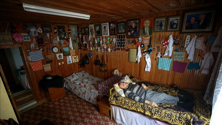 Trabzon'un Şalpazarı ilçesinde yatağa bağımlı yaşam süren bedensel engelli Bilgin Çakır, ailesinin de desteğiyle odasını adeta sergi alanına dönüştürdü.