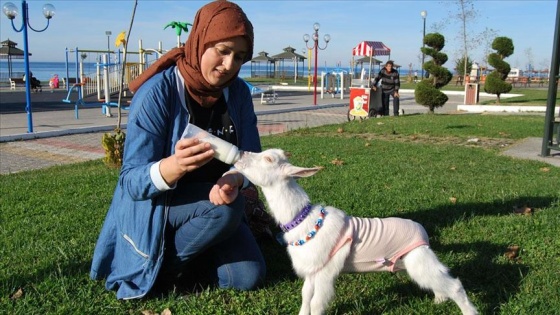 İnternetten araştırma yaparken keçilerin cana yakın, uysal hayvanlar olduğunu öğrendiğini belirten Mutlu, "Oradan otobüsle gönderdiler. İki aydır evde bakıyorum.