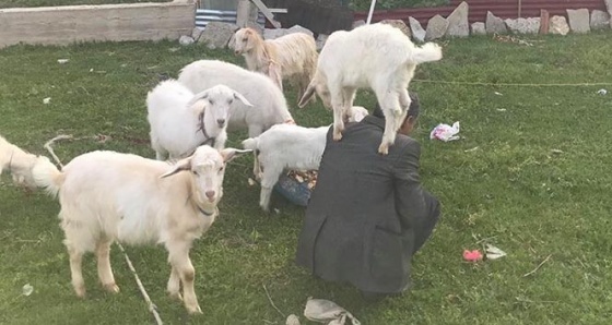 Yeniceköy Mahallesi'nde ikamet eden ve oto tamirciliği yaptığı öğrenilen Mustafa Keskin'in uzun zamandır evinin bahçesinde beslediği keçilerinden biri 2 yavru dünyaya getirdi.