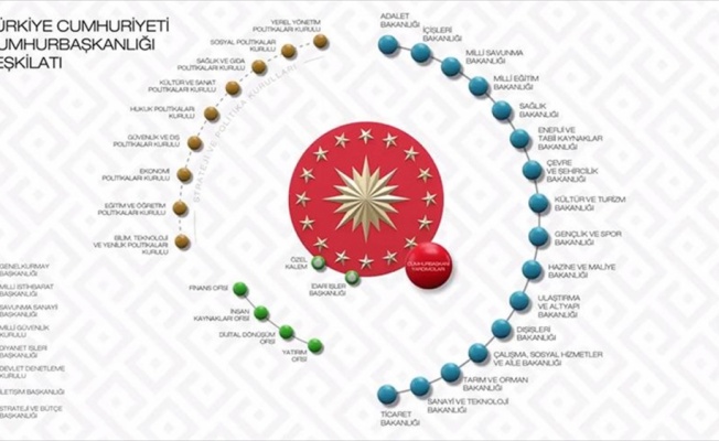 "Dev ekonomi, dijital dönüşüm, bilimsel atılım, sosyal devlet ve lider ülke" anlayışıyla oluşturulan yeni sistemle Türkiye'nin, Cumhuriyetin 100. yılında küresel güç olma yolunda yeniden şahlanması hedefleniyor. Cumhurbaşkanı Recep Tayyip Erdoğan'ın dün akşam ana hatlarını anlattığı yeni yönetim sisteminin detayları da belli oldu. Dev ekonomi, dijital dönüşüm, bilimsel atılım, sosyal devlet ve lider ülke anlayışıyla harmanlanan yeni sistem ile hükümet, hızlı, modern ve birlikte yönetim modeli ile daha şeffaf bir yapıya kavuşuyor. Türkiye'yi dünyanın ilk 10 ekonomisi arasına taşıyacak kalkınma hamlelerinin gerçekleştirilmesi kapsamında oluşturulan sistem, Türkiye'nin bilimde atılım ve toplumda refahla lider ülke olma hedefine koşmasınız amaçlıyor. Yeni yönetim modeli; yalın, makamların azaldığı, yeniliklere hızlı adapte olan, insan kaynağının gelişmesine imkan sağlayan, dijital dönüşümü gerçekleştiren, karar alma süreçlerini hızlandıran, küresel rekabet gücünü yükselten, ortak aklı kurumsallaştıran, yetki ve sorumlulukları net bir yapı ortaya koyuyor. Bakanlık sayısı 26'dan 16'ya indiriliyor Yeni modele göre, etkin bir koordinasyon için bazı bakanlıklar birleştirilerek bakanlık sayısı 26'dan 16'ya düşürülecek. Yeni yapılanma kapsamında bazı bakanlıkların da isimleri değişecek. Buna göre, Aile ve Sosyal Politikalar Bakanlığı ile Çalışma ve Sosyal Güvenlik Bakanlığı, "Çalışma Sosyal Hizmetler ve Aile Bakanlığı" adıyla yeni bir çatı altında birleştirilecek. Oluşturulacak yeni bakanlık, aileyi merkeze alan, her evden en az bir çalışanın olduğu yeni istihdam modeli ile daha mutlu insan ve toplum için hizmet verecek. Bilim, Sanayi ve Teknoloji Bakanlığı ile Kalkınma Bakanlığı ise "Sanayi ve Teknoloji Bakanlığı" adıyla birleştirilecek. Yeni oluşturulacak bakanlığın amacı, yüksek teknoloji ile küresel ve prestijli markalar üreterek yapay zekada öncü, akıllı teknolojilerde lider, bilgiyi üretmede merkez bir ülke hedefi olacak. İhracatın 500 milyar dolara yükseltilmesi ve İstanbul'un dünyanın finans merkezi olması hedefiyle, Gümrük ve Ticaret Bakanlığı ile Ekonomi Bakanlığı da "Ticaret Bakanlığı" adı altında birleştirilecek. Gıda, Tarım ve Hayvancılık Bakanlığı ile Orman ve Su İşleri Bakanlığı ise "Tarım ve Orman Bakanlığı" çatısı altında bir araya gelecek. Yeni bakanlık, orman arazilerinin korunarak yedi bölge, dört iklimde, her tarlanın sulandığı, yılda iki ürünün alındığı, tarımda çeşitliliğin ve verimliliğin zirveye ulaştığı, teşviklerin artarak sürdüğü, yemyeşil bir Türkiye hedefi için çalışacak. Dışişleri Bakanlığı ile Avrupa Birliği Bakanlığı da birleştirilerek, "Dışişleri Bakanlığı" çatısı altında dış politikada daha etkili, uluslararası gelişmelerde daha etkin rol oynayacak. Bakanlıklar birleşiyor, isimler değişiyor AK Parti göreve geldiğinde 37 olan bakanlık sayısı Cumhurbaşkanlığı Hükümet Sistemi ile 16'ya inecek. Böylece kademeler azalacak, karar alım süreçleri hızlanacak. Yeni sistemle birlikte kabinede köklü değişiklikler olacak. Birleştirilen bakanlıklar yeni bir isimle yapılandırılırken, bazı bakanlıkların ise isimleri değişecek. Bu arada ekonomi alanında 6 olan ilgili bakanlık sayısı 3'e inecek. Bu kapsamda, 16 yılda 3 kattan fazla artan milli geliri vizyon projelerle, ekonomik canlılık, istihdam, bilgi ve toplumsal fayda üreterek yeniden katlama hedefiyle oluşturulan sistemde ekonomi yönetimi sadeleşecek. Başbakan Yardımcılığına bağlı Hazine Müsteşarlığı yeni yapılanmada Maliye Bakanlığı çatısı altında olacak. Maliye Bakanlığının adı ise "Hazine ve Maliye Bakanlığı" olarak değiştirilecek. Ulaştırma Denizcilik ve Haberleşme Bakanlığının adı ise "Ulaştırma ve Altyapı Bakanlığı" olacak. İşte yeni sistemdeki bakanlıkların isimleri: "Adalet Bakanlığı, İçişleri Bakanlığı, Milli Savunma Bakanlığı, Milli Eğitim Bakanlığı, Sağlık Bakanlığı, Enerji ve Tabii Kaynaklar Bakanlığı, Çevre ve Şehircilik Bakanlığı, Kültür ve Turizm Bakanlığı, Gençlik ve Spor Bakanlığı, Hazine ve Maliye Bakanlığı, Ulaştırma ve Altyapı Bakanlığı, Dışişleri Bakanlığı, Çalışma Sosyal Hizmetler ve Aile Bakanlığı, Tarım ve Orman Bakanlığı, Sanayi ve Teknoloji Bakanlığı, Ticaret Bakanlığı." Strateji ve politika kurulları oluşturulacak Cumhurbaşkanlığı Hükümet Sistemi ile oluşturulacak 9 kurul politika önerileri yapacak, bilimden, sağlık ve gıda politikalarına kadar stratejik ve uzun vadeli vizyonlar geliştirecek. Yerel Yönetim Politikaları Kurulu, Sosyal Politikalar Kurulu, Sağlık ve Gıda Politikaları Kurulu, Kültür ve Sanat Politikaları Kurulu, Hukuk Politikaları Kurulu, Güvenlik ve Dış Politikalar Kurulu, Ekonomi Politikaları Kurulu, Eğitim ve Öğretim Politikaları Kurulu, Bilim, Teknoloji ve Yenilik Politikaları Kurulu adlarıyla oluşturulacak yapılanma ile sivil toplum kuruluşları, akademi ve sektör temsilcileri politika yapım sürecine doğrudan dahil edilerek ortak aklın kurumsallaştırılmasını sağlayacak. Politika önerisi geliştirecek kurullar, icra faaliyetlerini izleyerek ilerleme raporları hazırlayacak. Cumhurbaşkanına bağlı 4 ofis aktif rol oynayacak Yeni sistemde tüm bakanlıkları ilgilendiren konularda faaliyet yürütecek olan doğrudan Cumhurbaşkanına bağlı 4 ofis kurulacak. Finans Ofisi, İnsan Kaynakları Ofisi, Dijital Dönüşüm Ofisi ve Yatırım Ofisi adlarını taşıyacak bu birimler, insan kaynağının etkin ve verimli kullanımı, dijital dönüşüm ve hizmet kalitesinin artırılması ile Türkiye'nin yatırım alanında cazibe merkezi haline getirilmesi ve yeni finansal enstrümanların gelişti
