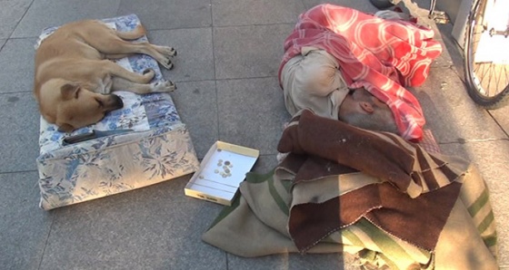Fatih’in Seyyid Ömer Mahallesi’nde bulunan Hekimoğlu Ali Paşa Caddesi’nde yıllardır karton parçalarının üzerinde bir köpekle birlikte uyuyan adam görenlerin yüreğini sızlattı. Çevredeki esnafın ve cadde üzerinden geçen vatandaşların kısıtlı yardımlarıyla yaşama tutunmaya çalışan adamın yaz kış caddede köpekle birlikte uyuduğu ifade edildi.