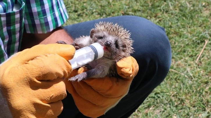 Yozgat'ın Sarıkaya ilçesinde yaşayan çiftçi Muhammet Tanış, anneleri öldüğü için sahiplendiği 4 kirpi yavrusuna bebek gibi bakıyor.