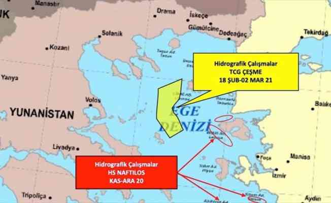 Bakanlık kaynakları, Kasım-Aralık 2020'de Midilli Adası kuzeyi ve batısında, Sakız ve Ahikerya adaları kuzeyinde uluslararası suları da kapsayan deniz alanlarında Yunan Deniz Kuvvetlerine bağlı HS Naftilos araştırma gemisinin de benzer çalışmalar yaptığını belirtti.