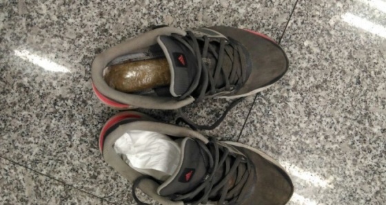 Uluslararası uçuşlara da hizmet veren İzmir Adnan Menderes Havalimanı sahasında şüpheli olabilecek yolcular ve çantalar üzerinde yapılan çalışmalar sırasında M.A.’nın durumundan şüphelenilmesi üzerine görevlilerce durdurularak kontrol altına alındı. Narkotik detektör köpeği Leo tarafından şahsın eşyalarında ve üzerinde yapılan kontrollerde, M.A.’nın ayakkabılarının altına zulalanmış şekilde naylon poşetlere sarılmış 110 gram toz esrar maddesi ele geçirildi.
