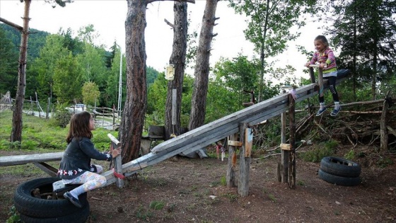 İstanbul'dan tatile gelen yeğenleri ile parkta vakit geçiren Sevda Arslan, "Çam ağaçlarının altında, yeşillik içinde bir ortam çok hoşlarına gitti.